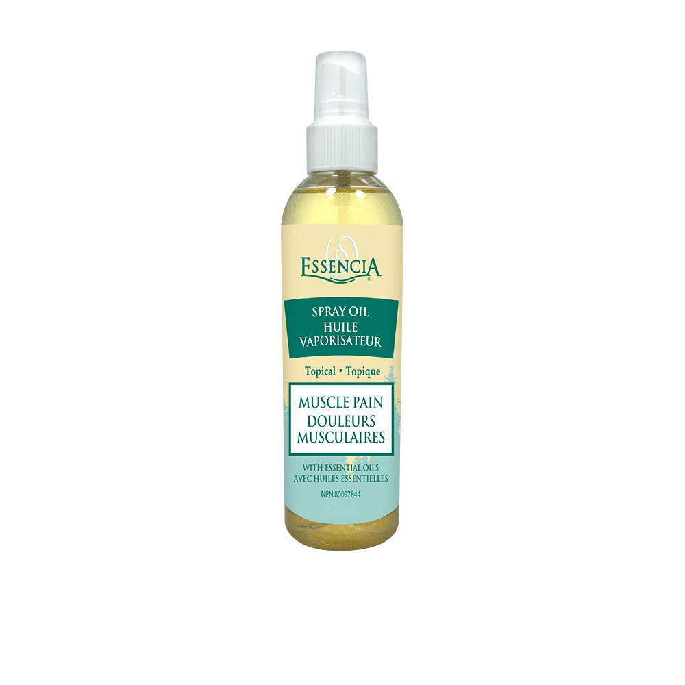 Essencia Muscle Pain Oil Spray 250 ml (voorheen Essencia Citronella Spray Oil): Deze oliespray wordt gebruikt in Aromatherapie. Het helpt gewrichts- en spierpijn te verlichten die gepaard gaat met: verstuiking, verrekking en reumatoïde artritis. Ingrediënten: Mengsel van koolzaadolie en druivenpitolie vermengd met essentiële oliën van Het is samengesteld uit de beste essentiële oliën van citronella, lavendel, citroen, eucalyptus, pepermunt en geranium. Gebruiksaanwijzing: Alleen voor incidenteel gebruik.