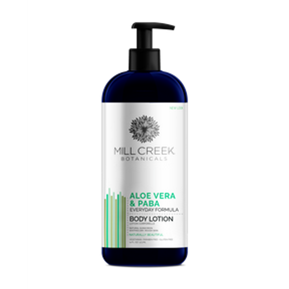 Mill Creek Aloe Vera & Paba Moisturizing Lotion bevat de beste voedingsstoffen die de huid voeden, vocht aanvullen, UV-bescherming bieden, zachtheid en soepelheid stimuleren en kleine huidirritaties door scheren, huiduitslag door wasmiddel en een droge, gebarsten huid kalmeren. pH-gebalanceerd.