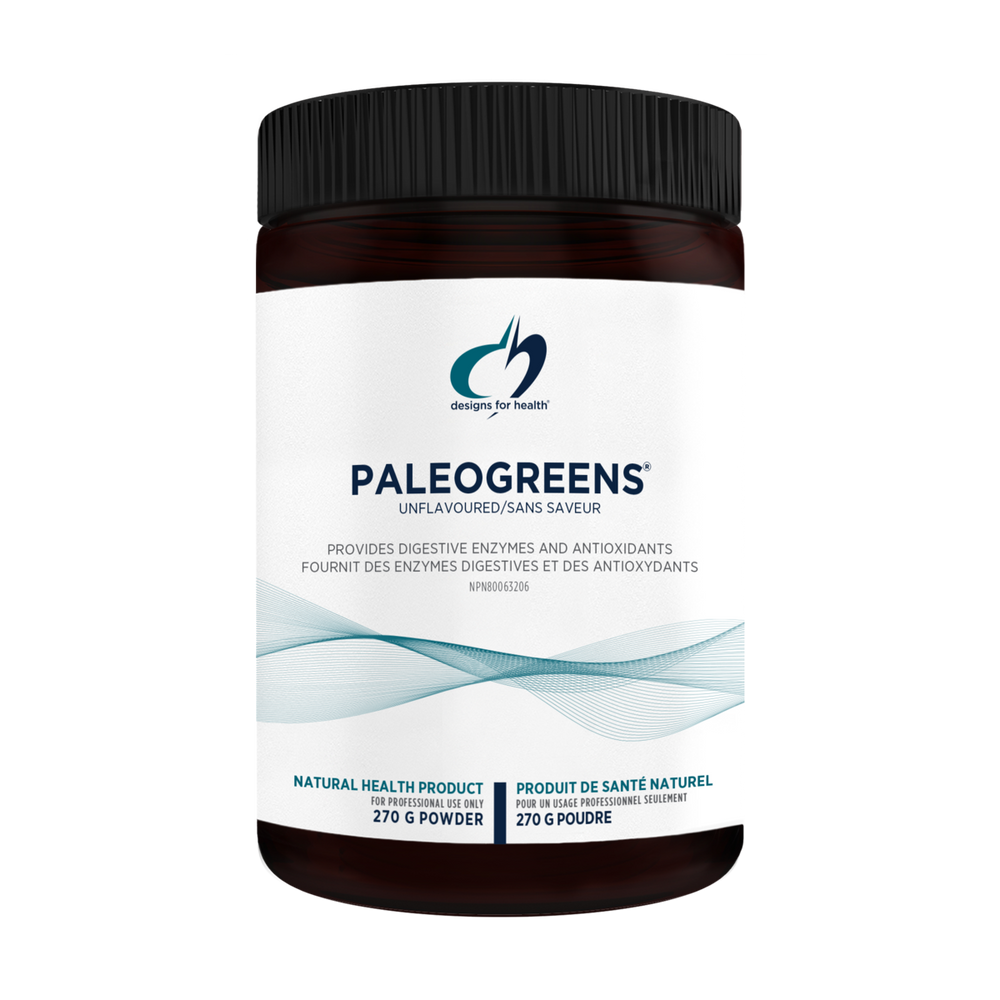 Designs for Health PaleoGreens Biologisch Zonder smaak - Poeder 270 gram: PaleoGreens™ is het heerlijk smakende groene voedsel van Designs for Health, gemaakt met meer dan 90% biologische ingrediënten. De groente-, fruit- en besseningrediënten zijn felgekleurd en niet-geoxideerd, omdat de poeders van begin tot eind worden beschermd tegen hitte, UV-licht en vocht. Deze greens hebben een Paleo-profiel; ze bevatten geen granen, peulvruchten, luzerne, maïs, gluten, fructose of kunstmatige zoetstoffen. In tegenstelling tot andere groenteproducten voegen we nooit goedkope vulstoffen of vulstoffen toe, zoals vezels, hele grassen, pectine, rijstzemelen en/of vlas, die 40% tot 60% uitmaken van de inhoud van de meeste andere groenteproducten. Biedt spijsverteringsenzymen en antioxidanten. Ingrediënten: Elke 1 el/9 g bevat: Fruit- en groentemix (Beta vulgaris (biet), Daucus carota (wortel), Solanum lycopersicum-fruit (tomaat), Vaccinium angustifo/ium-fruit (bosbes), Vaccinium macrocarpon-fruit (veenbes), Rubus idaeus-fruit (framboos) , Ma/us domestica-Fruit (Appel), Vaccinium corymbosum-Fruit (Bosbes), Brassica o/eracea var.cursief-Sprout (Broccoli), Brassica o/eracea var.viridis-Blad (Boerenkool), Petrose/inum crispum- Blad (Peterselie), Spinacia oleracea-Blad (Spinazie), Myrciaria dubia-Fruit (Camu-camu), Brassica oleracea var. Botrytis-Sprout (Bloemkool), Brassica o/eracea var. viridis-Sprout (Boerenkool)) 5,6 gr Spirulina (Arthrospira maxima-geheel) 1550mg Gerstegras (Hordeum vulgare-Kruid) 600mg Tarwegras (Triticum aestivum-blad) 600mg Chlorella vulgaris (Gebroken cel) 250mg Druif (Vitis vinifera-Zaad) (95% Polyfenolen) 175mg Klis (Arctium Jappa-Root) 58mg Brandnetel (Urtica dioica-Herb top) 50mg Druif (Vitis vinifera-schil, fruit) (10% resveratrol) 31mg Alfa-amylase (Aspergillus flavus var. oryzae-geheel) 15 mg (1500 FCC DU) Cellulase (Trichoderma /ongibrachiatum-geheel) 15 mg (2700 FCC CU) Lipase (Triacylglycerol lipase, Candida rugosa-geheel) 15 mg (3600 FCC LU) Protease (Aspergillus flavus var. oryzae-geheel) 15 mg (8700 FCC HUT) Aanbevolen dosering: Volwassenen: voeg 1 eetlepel (9 g) toe aan water, roer stevig en consumeer onmiddellijk eenmaal per dag. Innemen met eten. Raadpleeg een arts voor langdurig gebruik. Raadpleeg een zorgverlener voor gebruik langer dan 3 maanden. Zuiverheid: Glutenvrij, Zuivelvrij, Non GMO, Geschikt voor vegetariërs.
