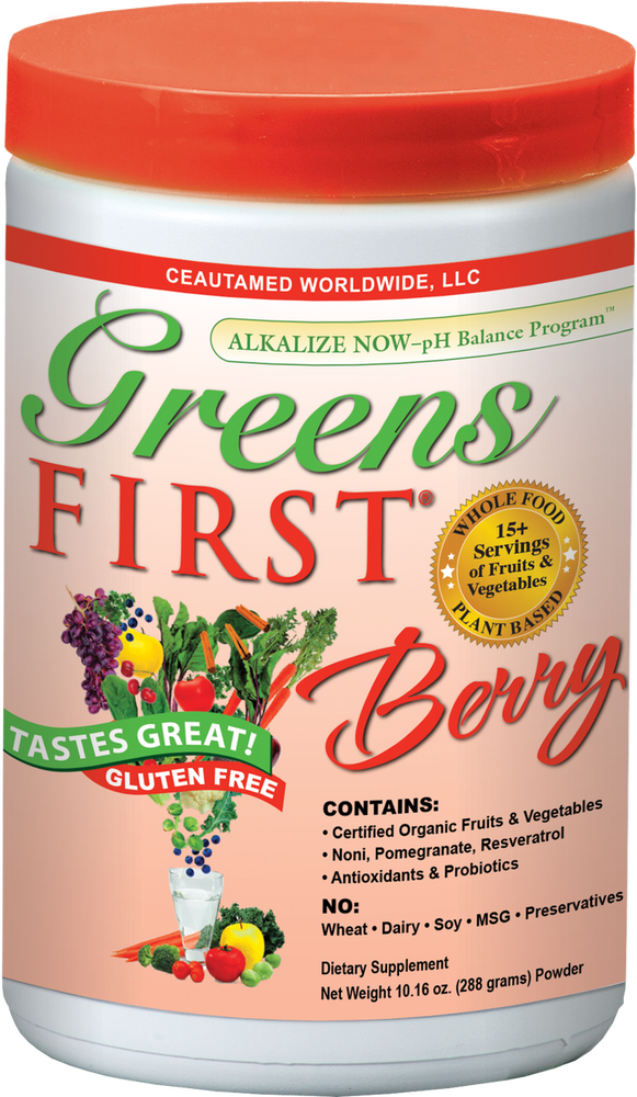 Greens First Berry 288 gram door Ceautamed: Formules van professionele kwaliteit met verschillende superfoods aanbevolen door beoefenaars voor diegenen die op zoek zijn naar pure, volledige voedselformuleringen. Het is speciaal ontwikkeld voor diegenen die hun groenten en fruit willen krijgen in een heerlijke en handige mix van hele voedingsmiddelen zonder gluten of andere veel voorkomende allergenen. Het bevat waarheid van superfoods, extracten van groenten en fruit, probiotica, vezels, natuurlijke flavonoïden en spijsverteringsenzymen. Rijk aan alkalische voedingsstoffen om evenwichtige pH-waarden te ondersteunen, en het is gemakkelijk te verteren. Deze professionele producten zijn gemaakt om de pH-balans van het lichaam te ondersteunen en te alkaliseren, om het ontstekingsproces te helpen verminderen, om alle 5 de belangrijkste vrije radicalen te doven en om het lichaam te voeden met de antioxiderende en fytonutriëntenkracht van meer dan 15 porties van fruit, groenten, superfoods, probiotica, spijsverteringsenzymen en meer! De eerste producten van Greens worden vervaardigd in een ISO 9000-gecertificeerde farmaceutische productiefaciliteit met productienormen die de hoogste in de branche zijn, en gecertificeerde GMP-kwaliteitsnormen en hebben onafhankelijke analyses door derden. De eerste producten van Greens zijn afgeleid van voedzame, hele voedingsmiddelen die zonder oplosmiddelen en bij lage temperatuur zijn verwerkt, waarbij de belangrijke voedingsstoffen en enzymen intact zijn gebleven. Greens First-producten zijn licht verteerbaar gemaakt voor een snelle opname en assimilatie van alle voedingsstoffen. Producten zijn "body ready", wat betekent dat alle voedingsstoffen worden geleverd in een voorverteerde of reeds afgebroken staat in een voedzame poedervorm. Formule bevat co-factoren die nodig zijn voor een goede opname die het lichaam nodig heeft om de voedingsstoffen te gebruiken, waaronder enzymen, probiotica en meer. Het is de combinatie van al deze essentiële componenten die de producten van Greens First van topkwaliteit maakt. Nutrient-Dense betekent dat Greens First PRO-producten de meeste voedingsstoffen per portie bevatten. De essentiële voedingsstoffen die het lichaam nodig heeft om gezond en actief te blijven, worden niet in het lichaam gemaakt. Die voedingsstoffen moeten we allemaal binnenkrijgen via ons voedsel. Maar met de huidige drukke, hectische levensstijl en fastfoodmaaltijden is het moeilijk om te eten zoals de meesten van ons weten dat we zouden moeten eten. Daarom zijn Greens First PRO-producten de perfecte oplossing voor een snelle, gemakkelijke en heerlijke bron van hoogwaardige, natuurlijke en onveranderde voedingsstoffen om uw hele lichaam te alkaliseren, te voeden en in balans te brengen! Greens vult eerst het gat tussen wat je eet en wat je zou moeten eten. het is een heerlijk en compleet supplement met fytonutriënten en antioxidanten dat synergetisch in je lichaam werkt, wat resulteert in een geavanceerde combinatie van de gezondste vruchten, bessen en tuingroenten van de natuur, samen met rijstzemelen, lijnzaad en een probiotische mix voor een gezonde spijsvertering. Zuiverheid: Vegetarisch & Veganistisch; Gezoet met stevia (geen calorieën, laag glycemisch), niet GMO, geen MSG of gist, geen maïs, rogge of tarwe, geen soja-eiwit, geen zuivelproducten, eieren of dierlijke bijproducten, geen kunstmatige ingrediënten, zoetstoffen of conserveermiddelen Routebeschrijving: Greens First Berry is de snelle, gemakkelijke en heerlijke manier voor het hele gezin om de aanbevolen porties fruit en groenten binnen te krijgen! Geniet elke dag van de voordelen van fytonutriënten en antioxidanten van een dieet dat rijk is aan bessen, fruit en groenten in één gebruiksvriendelijk product. Voeg 1 afgestreken lepel toe aan 6-8 oz. van koud water. schud het in een afgesloten bakje en geniet ervan. Het heeft de voorkeur 's morgens vroeg, of het kan op elk moment van de dag worden ingenomen. Koud bewaren na openen.