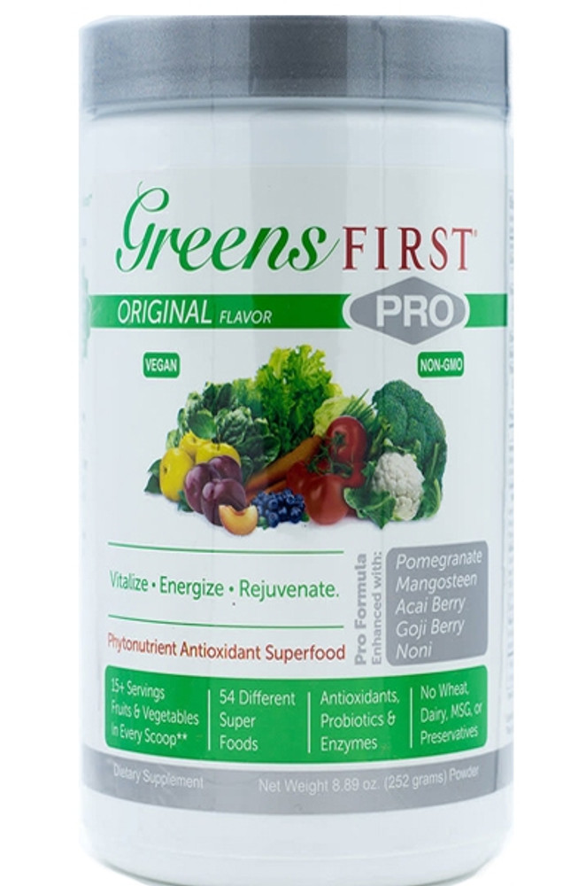 Greens First Pro 252 gram van Ceautamed: Greens First is de heerlijke, snelle en gemakkelijke manier voor het hele gezin om te genieten van de fytonutriënten en antioxiderende voordelen van een dieet dat rijk is aan donkergroen en felgekleurd fruit en groenten in één gebruiksvriendelijk product. Doe mee met de Greens First Revolution om uw gezondheid en algeheel welzijn te maximaliseren!* Greens First bevat gecertificeerd biologisch fruit, groenten en gerstegras die eerst worden geperst en vervolgens bij lage temperaturen worden gesproeidroogd, waarbij alle belangrijke voedingsstoffen en levende enzymen intact blijven. 100% natuurlijk - volwaardige voeding, plantaardige ingrediënten Gezoet met Stevia (geen calorieën, lage glycemische waarde) Vegetarisch & Veganistisch Gemakkelijk te verteren Niet gmo Geen MSG of gist Geen maïs, rogge of tarwe Geen soja-eiwit Geen zuivel, eieren of dierlijke bijproducten Geen kunstmatige ingrediënten, zoetstoffen of conserveermiddelen Rijk aan alkalische voedingsstoffen om evenwichtige pH-waarden te ondersteunen* Greens First is een compleet supplement met fytonutriënten en antioxidanten dat synergetisch in uw lichaam werkt en 49 verschillende superfoods, extracten en concentraten levert, waaronder supergroenten, biologisch fruit en groenten, probiotica, oplosbare en onoplosbare vezels, kruiden, specerijen, natuurlijke flavonoïden en spijsverteringsenzymen . De professionele formules met verschillende superfoods voor beoefenaars die op zoek zijn naar pure, volledige voedselformuleringen. Deze professionele producten zijn gemaakt om de pH-balans van het lichaam te ondersteunen en te alkaliseren, om het ontstekingsproces te helpen verminderen, om alle 5 de belangrijkste vrije radicalen te doven en om het lichaam te voeden met de antioxiderende en fytonutriëntenkracht van meer dan 15 porties van fruit, groenten, superfoods, probiotica, spijsverteringsenzymen en meer! Greens First-producten worden vervaardigd in een ISO 9000-gecertificeerde farmaceutische productiefaciliteit en onze productienormen zijn de hoogste in de branche. We voldoen aan gecertificeerde GMP-kwaliteitsnormen en hebben onafhankelijke analyses door derden. Greens First PRO-producten worden alleen gedistribueerd aan erkende zorgverleners. Greens First-producten zijn afgeleid van voedzame, hele voedingsmiddelen die bij lage temperatuur zijn verwerkt, waarbij de belangrijke voedingsstoffen en enzymen intact zijn gebleven. Greens First PRO-producten zijn licht verteerbaar gemaakt voor een snelle opname en assimilatie van alle voedingsstoffen. Als we zeggen dat onze producten "klaar voor het lichaam" zijn, bedoelen we dat alle voedingsstoffen worden geleverd in een voorverteerde of reeds afgebroken staat in een voedzame poedervorm. Onze formule bevat co-factoren die nodig zijn voor een goede opname die het lichaam nodig heeft om de voedingsstoffen te gebruiken, waaronder enzymen, probiotica en meer. Het is de combinatie van al deze vitale componenten die Greens First PRO-producten van topkwaliteit maakt. Nutrient-Dense betekent dat Greens First PRO-producten de meeste voedingsstoffen per portie bevatten. De essentiële voedingsstoffen die het lichaam nodig heeft om gezond en actief te blijven, worden niet in het lichaam gemaakt. Die voedingsstoffen moeten we allemaal binnenkrijgen via ons voedsel. Maar met de huidige drukke, hectische levensstijl en fastfoodmaaltijden is het moeilijk om te eten zoals de meesten van ons weten dat we zouden moeten eten. Daarom zijn Greens First PRO-producten de perfecte oplossing voor een snelle, gemakkelijke en heerlijke bron van hoogwaardige, natuurlijke en onveranderde voedingsstoffen om uw hele lichaam te alkaliseren, te voeden en in balans te brengen! Routebeschrijving: Greens First is de snelle, gemakkelijke en heerlijke manier voor het hele gezin om de aanbevolen porties fruit en groenten binnen te krijgen! Geniet elke dag van de voordelen van fytonutriënten en antioxidanten van een dieet dat rijk is aan bessen, fruit en groenten in één gebruiksvriendelijk product. Voeg 1 afgestreken lepel toe aan 6-8 oz. van koud water. schud het in een afgesloten bakje en geniet ervan. Het heeft de voorkeur 's morgens vroeg, of het kan op elk moment van de dag worden ingenomen. Koud bewaren na openen.